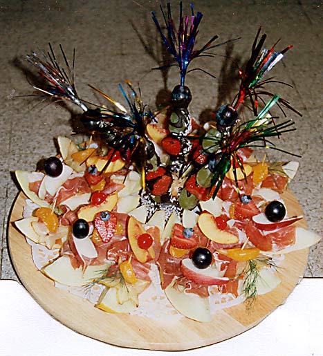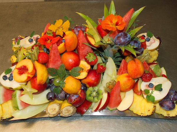 Desserts Obstkorb verschiedene Früchte der Saison Obstplatte Honigmelone mit Parmaschinken angerichtet, garniert mit Gemüse und Früchten Honigmelone Honigmelone mit Parmaschinken angerichtet, garniert mit Gemüse und Früchten Pudding, Quark- und Yoghurtspeisen Zitronencréme Eisbecher Eistörtchen